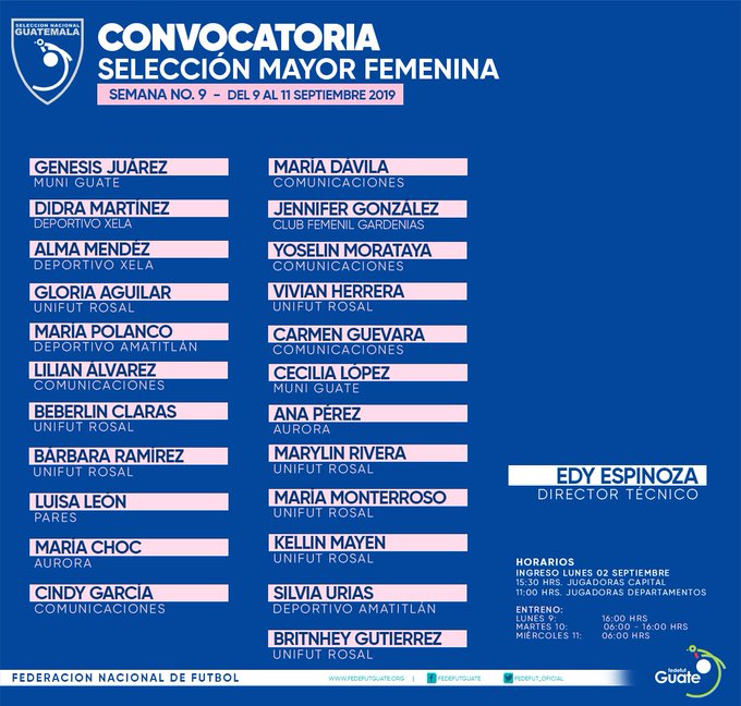 SUB 17 FEMENINA / CONVOCATORIA MICROCICLO No. 1 DEL 13 AL 15 DE ENERO 2020