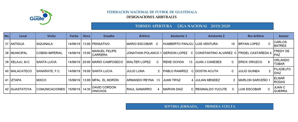 LIGA NACIONAL / NOMBRAMIENTOS ARBITRALES SEPTIMA JORNADA TORNEO APERTURA
