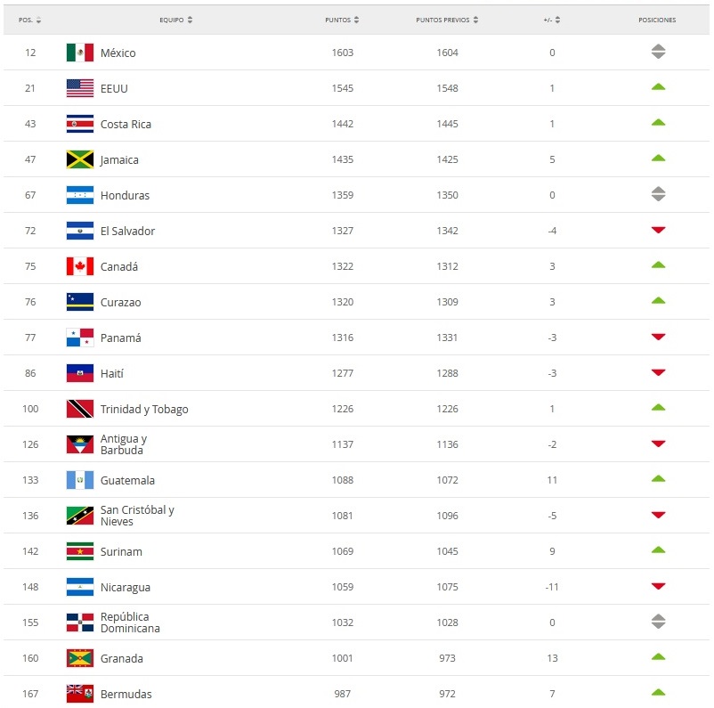 A nivel de CONCACAF el seleccionado nacional escaló 2 posiciones ubicándose en el lugar 13.