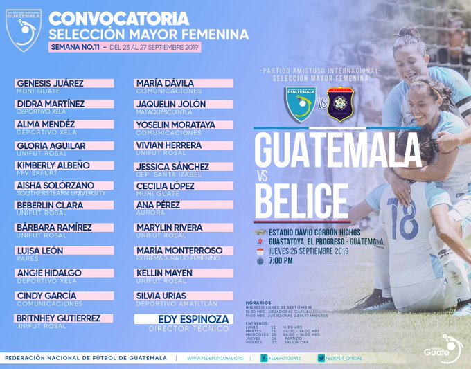 SELECCION MAYOR FEMENINA / CONVOCATORIA 23 AL 27 DE SEPTIEMBRE DE 2019