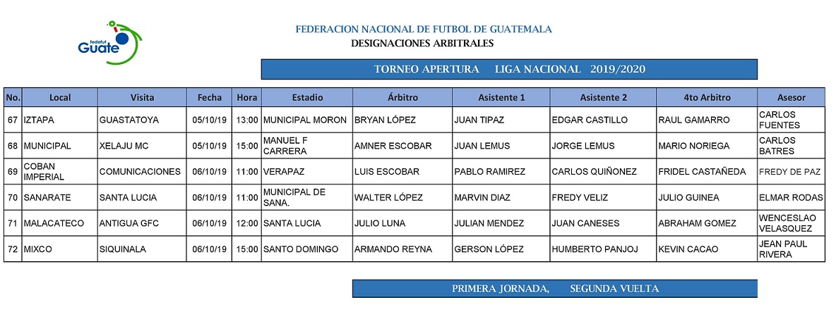 LIGA NACIONAL / NOMBRAMIENTOS ARBITRALES JORNADA 5 Y 6 DE OCTUBRE / TORNEO APERTURA