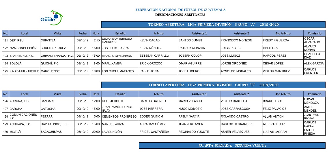 LIGA PRIMERA DIVISIÓN / NOMBRAMIENTOS ARBITRALES JORNADA DEL 9 DE OCTUBRE 2019