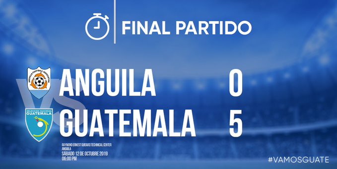 Guatemala, 13 de octubre de 2019. La Selección de Guatemala venció de visita a su similar de a Anguila con amplio marcador 0 – 5 en su tercera participación en la Liga de Naciones de Concacaf, en el estadio Raymond Ernest Guisard Technical Center, en la isla de Anguila.