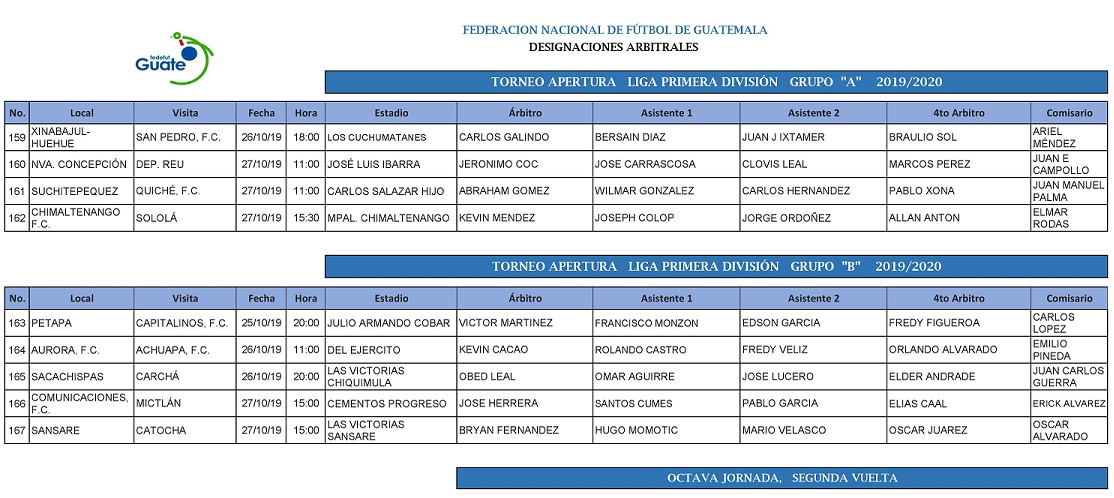 LIGA PRIMERA DIVISIÓN / NOMBRAMIENTOS ARBITRALES JORNADA DEL 25 AL 27 DE OCTUBRE / TORNEO APERTURA