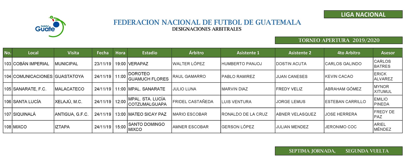 LIGA NACIONAL NOMBRAMIENTOS ARBITRALES 23 y 24 DE NOVIEMBRE DE 2019