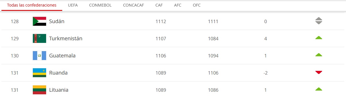 GUATEMALA CONTINÚA EN ASCENSO EN EL RANKING FIFA