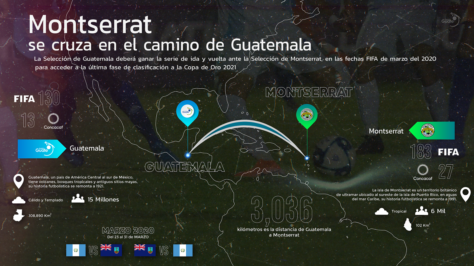 Guatemala, 12 de diciembre de 2019. La Selección de Guatemala deberá enfrentarse ante su similar de Montserrat en la fecha FIFA de marzo del próximo año, en una serie a visita reciproca que deberá ganar para acceder a la última fase de clasificación para la Copa de Oro 2021.
