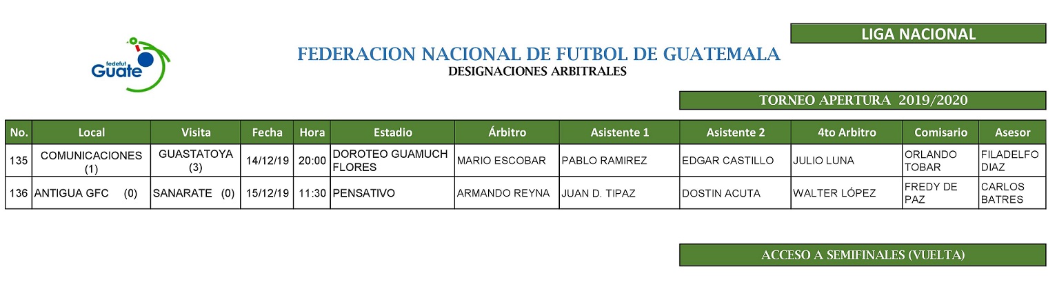 LIGA NACIONAL / NOMBRAMIENTO ARBITRAL / CLASIFICACION A SEMIFINALES (VUELTA)
