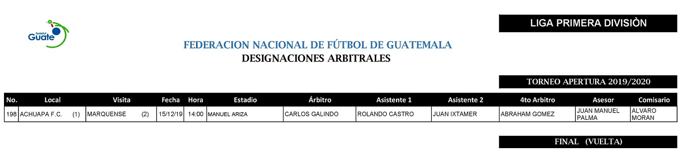 PRIMERA DIVISIÓN / NOMBRAMIENTO ARBITRAL FINAL DE VUELTA