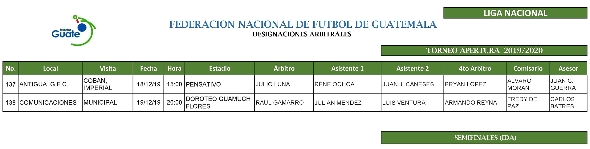 LIGA NACIONAL NOMBRAMIENTOS ARBITRALES SEMIFINAL (IDA)